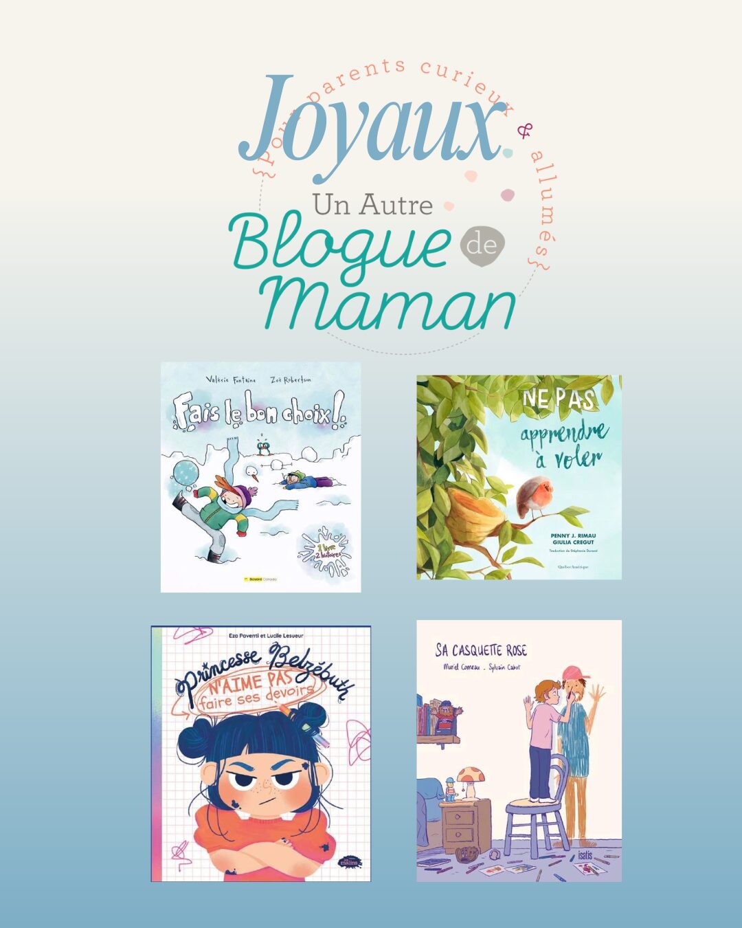 En bien c’est justement une liste semblable que je tente de créer, et ce, deux fois par année ! Voici le fruit de mes efforts pour l’automne 2025 et sachez que pour les romans, documentaires ou bandes dessinées, je vous présenterai mes favoris d’ici Noël sans toutefois me livrer à pareil palmarès. Devoir choisir et établir des critères de sélection “serrés” pour un seul type de livres, c’est bien assez ! Cet article comprend donc “Les joyaux” UABDM, mais aussi d’autres fabuleux albums qui méritent votre attention.